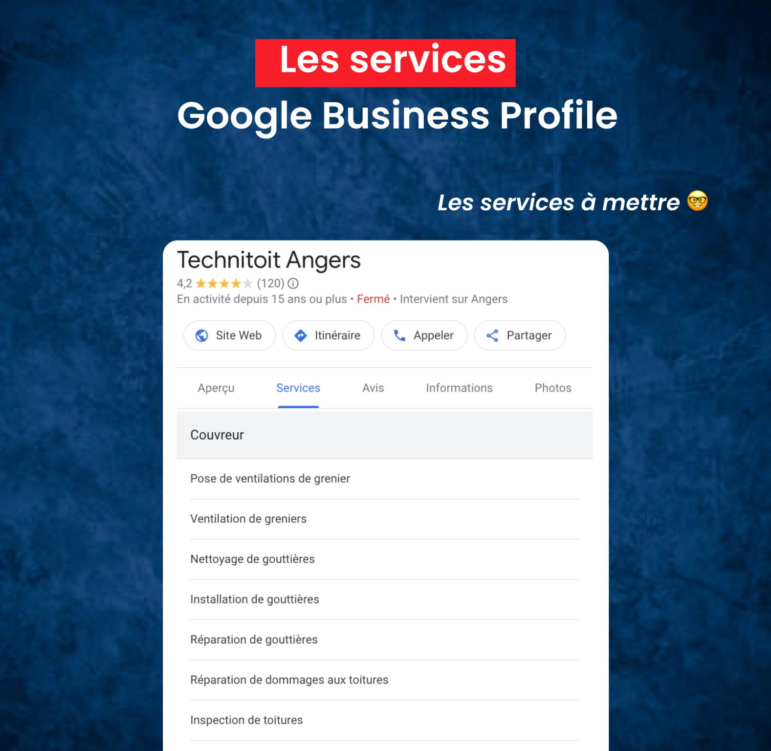 5) Bien remplir ses services / menu / produits sur Google Business Profile