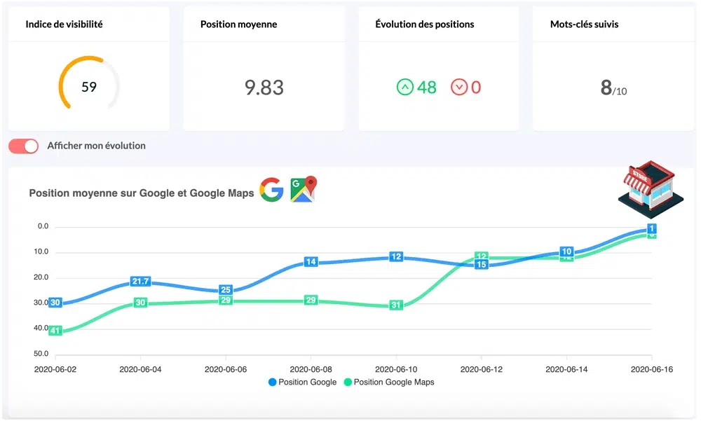 Vous pourrez alors voir si vos efforts d’optimisations ont des répercussions sur votre visibilité locale.