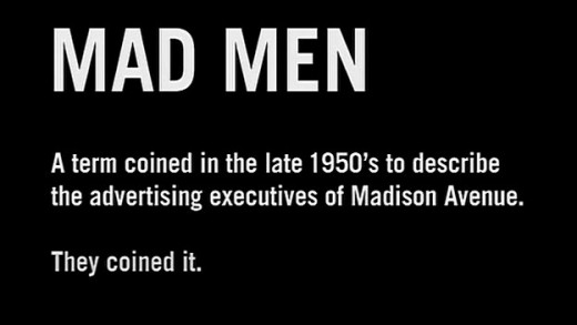 « MAD MEN : Terme inventé à la fin des années 50 pour décrire les publicitaires occupant des bureaux sur la Madison Avenue. Ce sont eux qui l’ont inventé. »