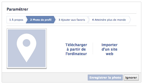 La seconde étape est celle du choix de votre photo de profil. Une photo de profil d’une page Facebook est un carré de 180*180px au minimum.