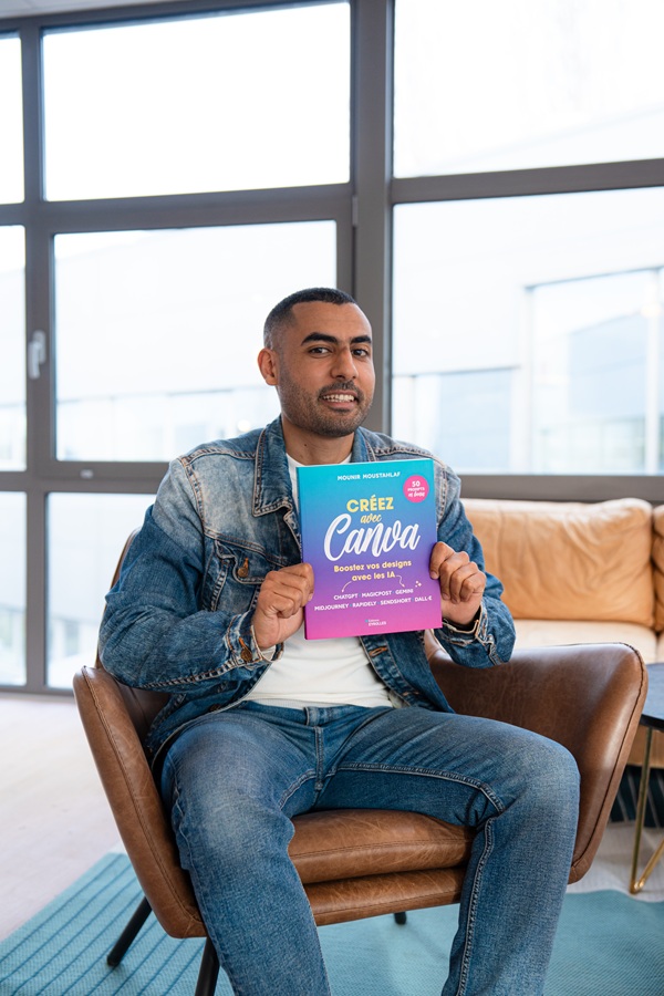 Créez avec Canva, boostez vos designs avec les IA est le 3ᵉ livre de Mounir Moustahlaf, paru fin mars 2025 aux éditions Eyrolles. Et il commence fort, avec Canva, que vous connaissez certainement.