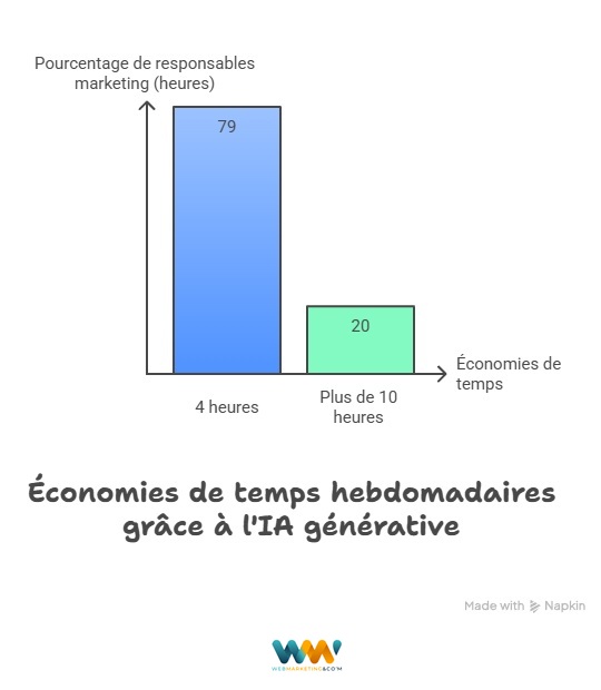 Si l’IA générative séduit, c’est aussi parce qu’elle produit des résultats concrets. En France, 79 % des responsables marketing affirment gagner 4 heures par semaine grâce à ces outils. Et 1 sur 5 dépasse les 10 heures hebdomadaires économisées. Ce temps libéré profite à des missions à forte valeur ajoutée : affiner sa stratégie de communication, renforcer sa présence digitale, travailler son inbound marketing, ou encore améliorer son expérience utilisateur et son expérience-client.