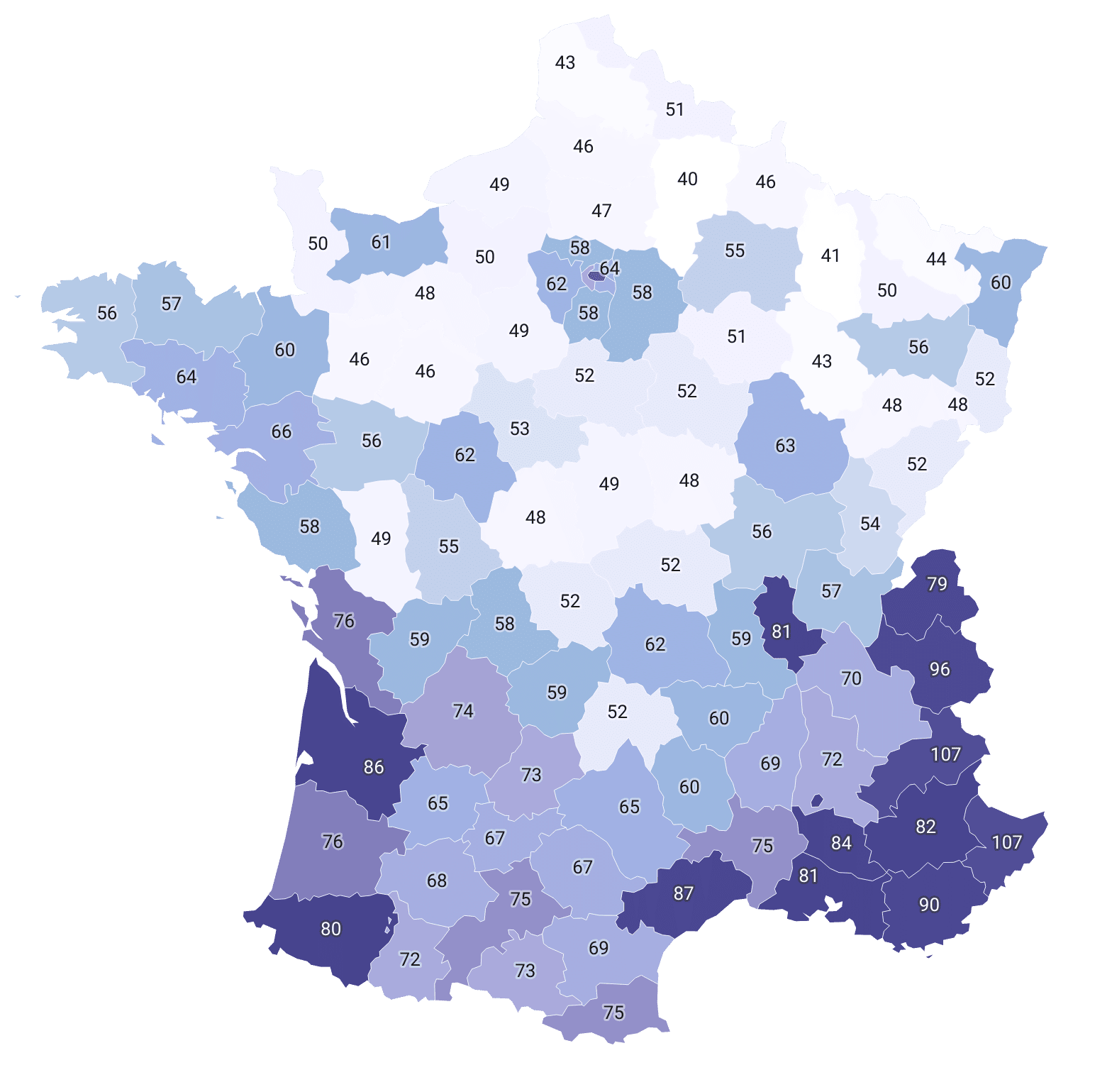 - … contre seulement 21 à 28 dans la Meuse, la Creuse ou la Haute-Marne.