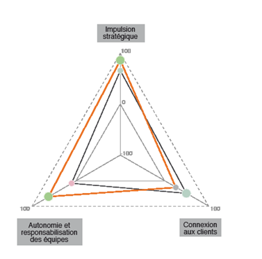 Le COS qui permet d’identifier l’orientation client en mettant dans la balance l’orientation collaborateurs / Corporate.