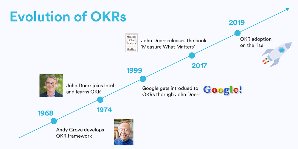 La méthodologie OKR a été développée par l’ancien CEO d’Intel, Andy Grove, dans les années 1970. Mais à vrai dire, elle a surtout été popularisée par Google qui l’a mise en place au début des années 2000 sur le conseil d’un de ses principaux investisseurs de l’époque, John Doerr (qui avait appris la méthodologie quand il travaillait chez Intel). De l’aveu même de Larry Page, le framework OKR est une des explications du succès de la firme de Mountain View – on se doute que ce n’est pas la seule, mais quand même !