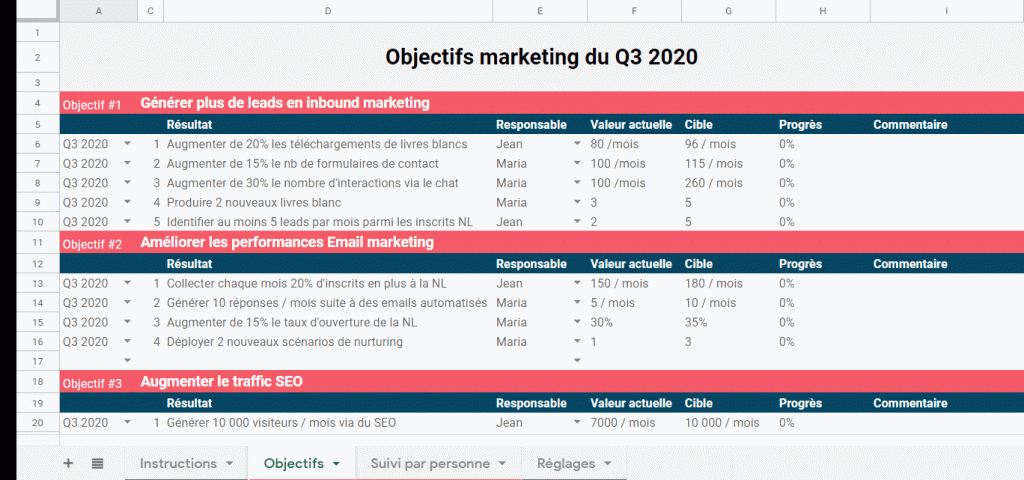 Pour vous inspirer, vous pouvez télécharger le template de grille OKR proposé par le cabinet de conseil Cartelis.
