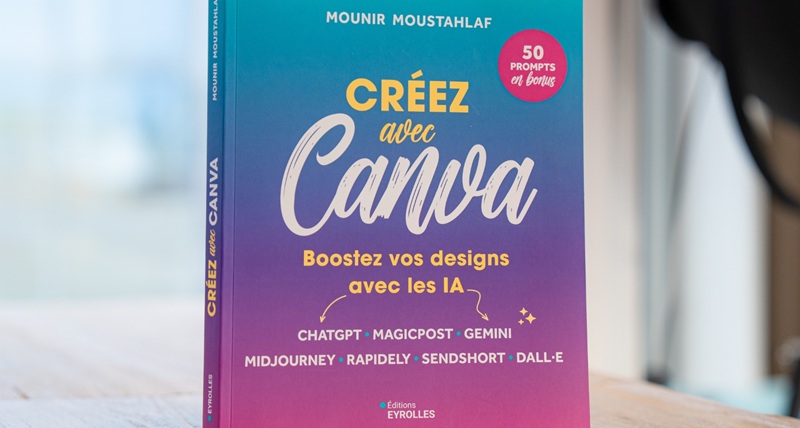 Au passage, Créez avec Canva, boostez vos designs avec les IA est le 3ᵉ livre de Mounir Moustahlaf, paru fin mars 2025 aux éditions Eyrolles. Et il commence fort, avec Canva !